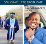 Baccus Roberts, DGL alumnus, made international news for his self-initiated environmental project with Abraham Freeman to turn recycled plastic in Liberia into bricks. Africa Voices (CNN Africa) featured their story. Baccus was honored at the 2019 African Community Service Awards for his work. Today, Baccus serves as the Health & Safety Manager at Liberia Electricity Corporation.